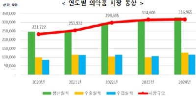 한편 2024년 의약품·의약외품 생산·수출·수입 주요 현황은 (메디컬월드뉴스 자료실)을 참고하면 된다.
