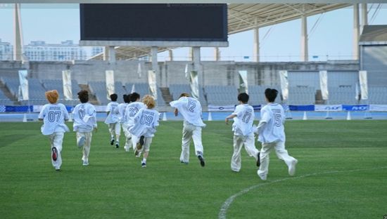 흩어져 있던 이들이 하나의 방향을 향해 달려 나가는 장면은 서로 다른 삶을 살아오던 아홉 소년이 아홉(AHOF)이라는 이름으로 뭉치는 여정을 암시하는 듯하다. 특히 멤버 전원이 함께 큰 경기장에 들어서는 순간은 치열한 리그전에서 살아남은 이들이 앞으로 펼쳐갈 무대를 상징하는 듯해 강렬한 인상을 남긴다.