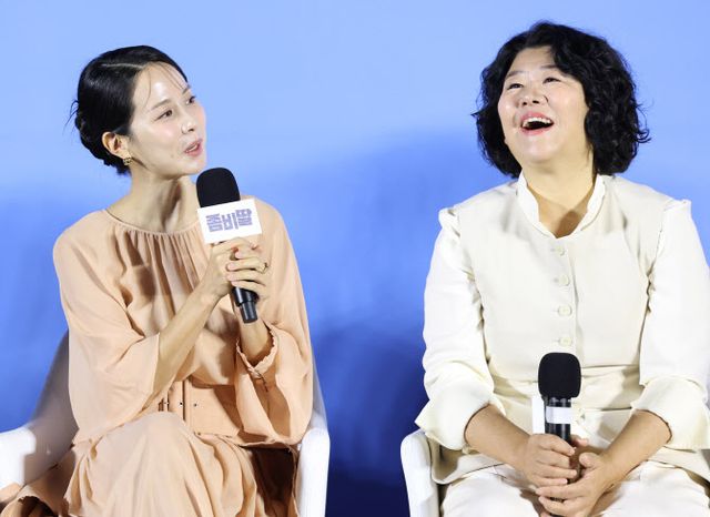 이정은과 조여정은 2019년 개봉한 봉준호 감독의 영화 ‘기생충’ 이후 ‘좀비딸’로 다시 한 번 만났다. 이정은은 “‘기생충’ 때와는 역할이 반전됐다”며 “‘기생충’ 때는 (조여정을) 사모님으로 모셨는데 이번에는 제가 집주인이다”라는 너스레로 웃음을 자아냈다.