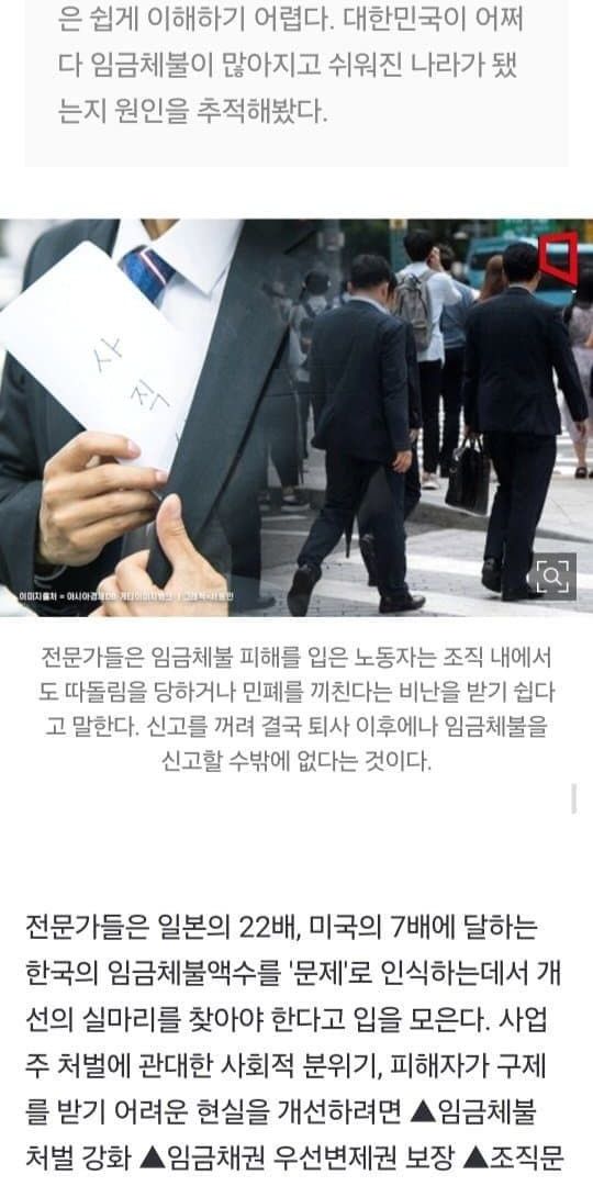 한국 임금체불 일본의 22배