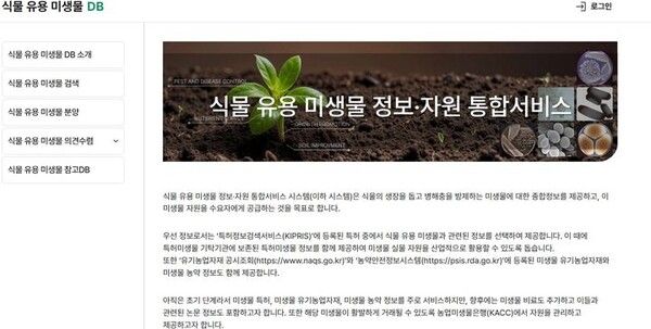 농약과 비료에 사용하는 미생물 정보를 통합 제공하고 분양 신청까지 할 수 있는 '식물 유용 미생물 정보·자원 통합서비스'가 출시됐다.