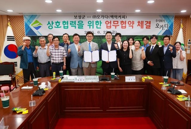 [파이낸셜경제=김예빈 기자] 보성군은 지난 27일 국내 커피 프랜차이즈 ‘백억커피’로 알려진 ㈜오가다(대표 최승윤)와 보성산 키위를 활용한 음료 개발 및 공동마케팅 추진을 위한 업무협약(MOU)을 체결했다고 밝혔다.