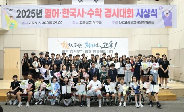 [파이낸셜경제=김영란 기자] (사)고흥군교육발전위원회는 30일 고흥군청 우주홀에서 ‘2025년 고흥군 영어, 한국사, 수학 경시대회 시상식’을 개최했다고 밝혔다.