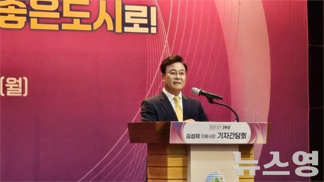 김성제 시장이 민선 8기 3주년 기자회견을 열고 있다./사진=뉴스영