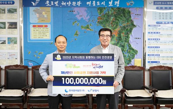 한국중부발전은 30일 충남 보령시의 생활안전 지역안전지수 개선 등을 위해 보령시에 1억원을 기탁했다고 밝혔다.