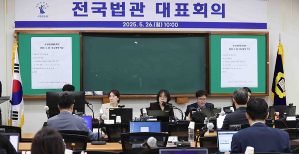 법관대표회의는 각급 법원에서 선출된 대표 판사들이 모여 사법행정에 관한 의견이나 요구사항을 모으는 기구다. 이 대통령의 공직선거법 사건에 대한 대법원의 판결을 둘러싸고 재판 공정성이 논란이 되자 지난 5월 26일 경기 고양시 사법연수원에서 임시회의를 열었다.