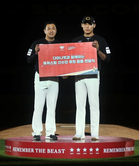 2015년부터 공식 파트너십을 맺고 경기용 유니폼부터 트레이닝 웨어 및 각종 용품 후원에 이르기까지 SSG랜더스와 10년 동행을 이어오고 있는 다이나핏은 김강민 선수의 마지막 공식 일정에 함께 했다. 특히 본 행사 중 진행된 ‘퓨처스팀 선수단 용품 후원 전달식’은 선수들에게 실질적인 격려와 지지를 전하며 의미를 더했다. 이번 용품 후원 전달식은 양측의 오랜 신뢰를 바탕으로 다이나핏과 구단이 함께 이어온 동행의 의미를 되새기는 상징적인 자리로, 구단의 미래인 유망주에 대한 독려이자 지원으로서 브랜드의 스포츠 진정성을 다시 한번 드러냈다.