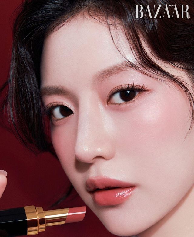 고윤정의 맑고 투명한 피부가 돋보이는 뷰티 룩. 인텐스 라즈베리 핑크 컬러인 ‘루쥬 코코 플래쉬’ 91 보헴이 하얀 피부 톤을 더욱 환하게 밝혀준다. ‘울트라 르 뗑 플루이드 파운데이션’으로 피붓결을 살리고, ‘레 베쥬 아이섀도우 팔레트’ 골든의 소프트 새틴 코럴 컬러로 눈가에 부드러운 음영을 얹었다. 풀 립으로 바른 91 보헴 컬러가 시선을 사로잡는다.