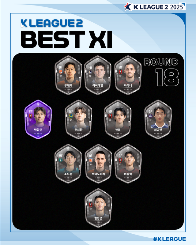 [ 하나은행 K리그2 2025 18R MVP, 베스트 팀/매치, 베스트11 ]