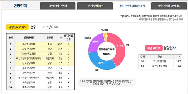 특히 이 시스템은 예측 결과에 따라 취업 역량 강화 방안, 추가 마일리지 획득 방법 등 맞춤형 ‘UP가이드’를 제공한다. 대학 측은 “데이터 기반의 체계적인 상담으로 효과적인 취업 지원이 가능해졌다”고 설명했다.