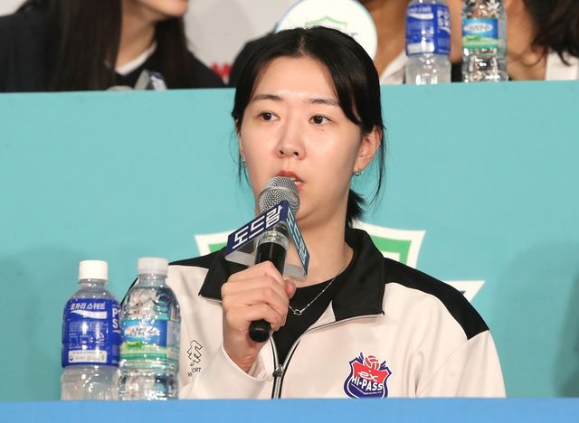 지난해 10월 16일 오후 서울 서초구 더케이호텔에서 열린 '도드람 2024-2025 V-리그 여자부 미디어데이'에서 한국도로공사 강소휘가 시즌에 임하는 각오를 밝히고 있다. / 뉴스1