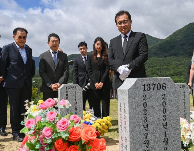 이 특검은 참배 후 기자들과 만나 "채 해병의 안타까운 죽음이 헛되지 않도록 반드시, 기필코 진실을 규명하겠다"고 밝혔다.