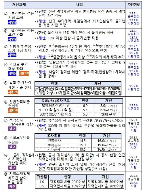 이와 함께 지방계약 제도개선 사항 발표(3월 31일) 후 지난 5월 1일 개정한 지방계약 예규의 일부 개정사항이 7월 1일부터 전면 시행된다.