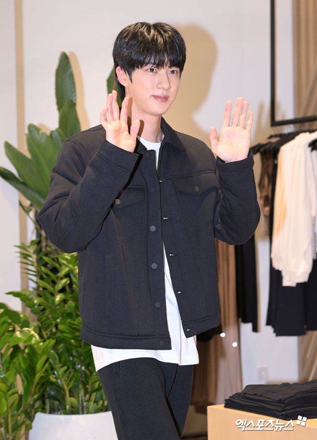 이날 행사에 참석한 방탄소년단 진이 포즈를 취하고 있다.