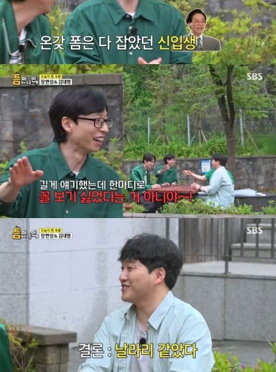 특히 이날 장현성은 "재석이는 프로그램을 통해서 만났지만 대학교 다닐 때 생각이 난다. 너가 91학번이고, 내가 89학번 아니냐"고 과거를 떠올렸다.