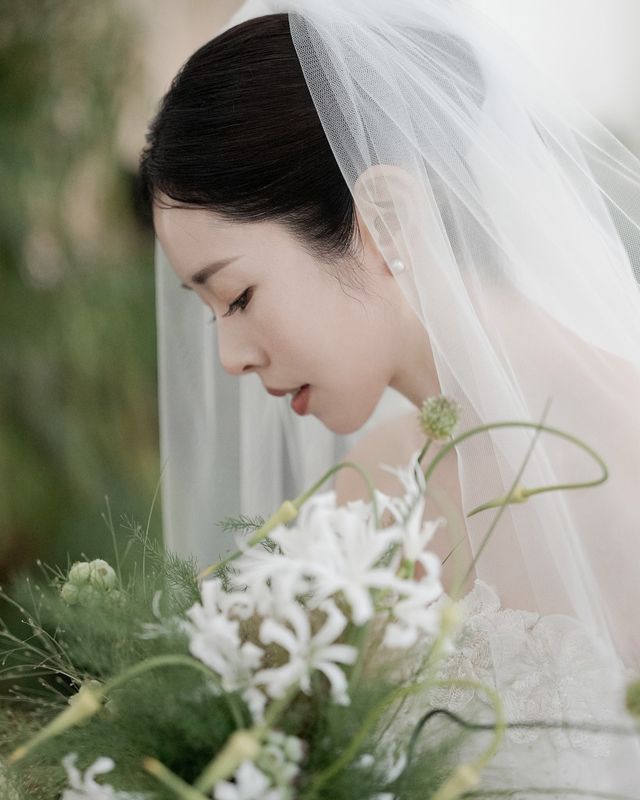공개된 사진 속 서동주는 순백의 오프숄더 웨딩드레스를 입고 청초한 미모를 뽐냈다. 단아하게 묶은 헤어스타일과 면사포, 소박한 부케가 어우러져 청순하면서도 우아한 분위기를 자아냈다.