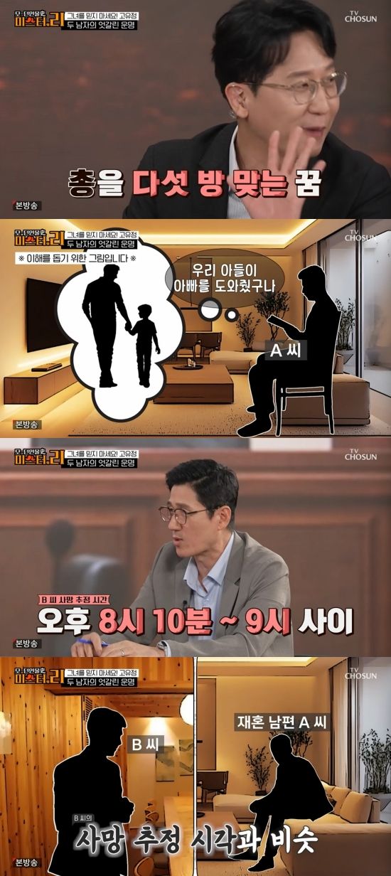 B씨가 살해됐다고 추정된 시각, 묘하게도 당시 현 남편이었던 A씨는 총을 다섯 방 맞는 꿈을 꾸고 로또 2등에 당첨이 됐다.