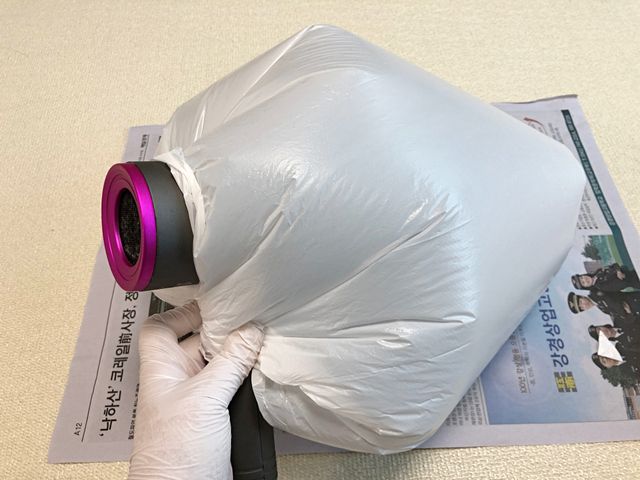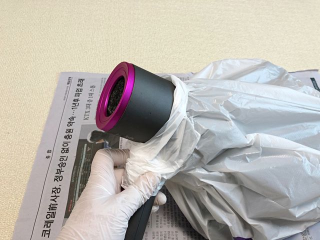 드라이기를 넣은 상태로 입구를 오므린 다음