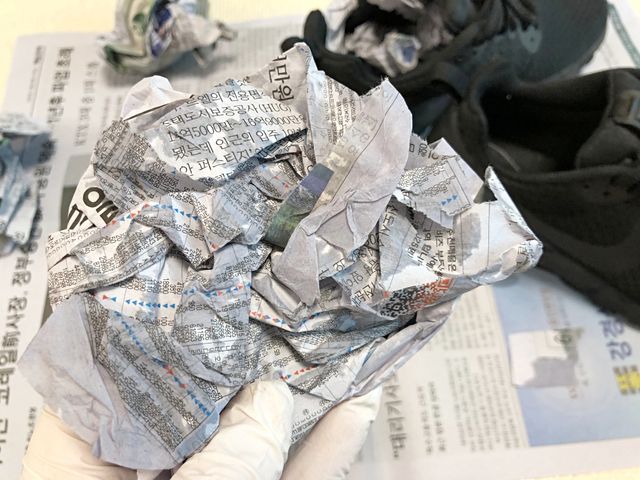 새 신문지를 구겨서 채운 뒤 다음 단계로 넘어가요.