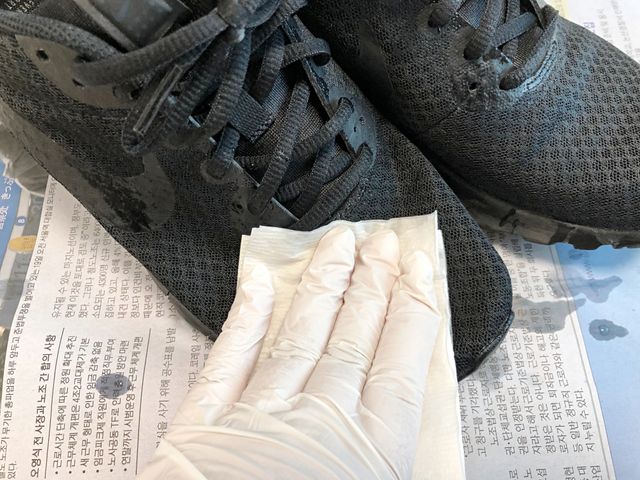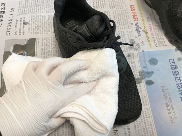 운동화 겉의 물기만 닦아내는건 소용이 없어요.