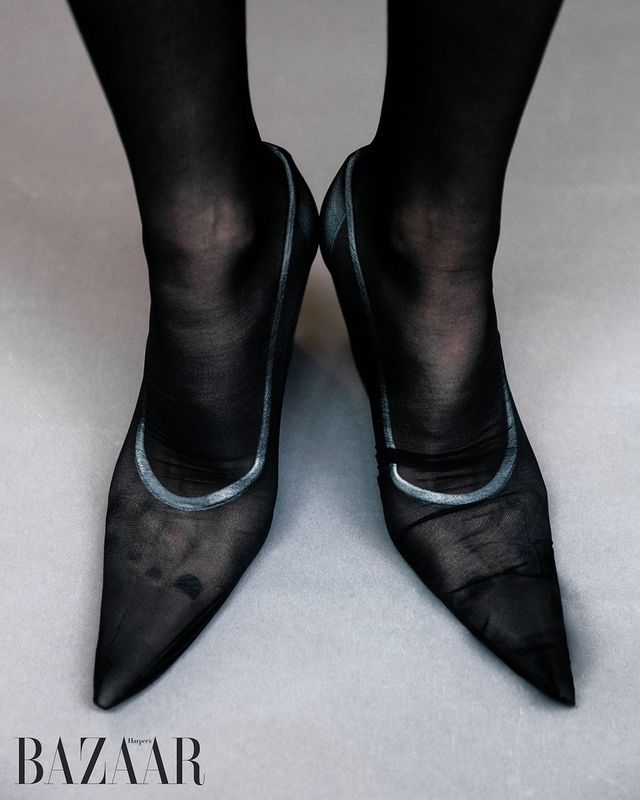 나일론 메시 펌프스는 Sportmax. 스타킹은 스타일리스트 소장품.