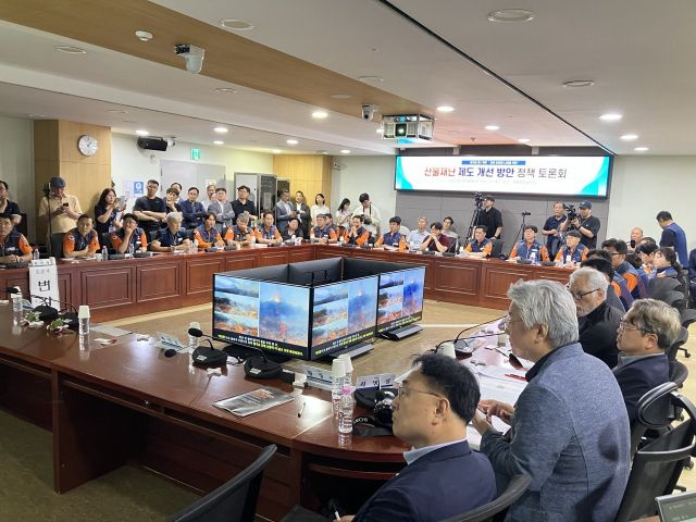 준비된 토론이 끝난 후 참여자석에선 10여 명이 발언권을 달라며 손을 들었다. 산불전문강사로 일하는 한 퇴직 소방관은 "의성 산불은 완전한 인재였다. 대형산불의 패턴을 다 알지 않았느냐"며 "지휘 본부에선 (영덕) 바닷가까지 산불이 확산할 거란 걸 알고 있지 않았느냐. 이걸 방송사를 부르든 미리 알렸으면 30여 명이 죽었겠느냐. 이 지휘권에 있는 사람은 인사 조치를 해야 한다"고 주장했다.
