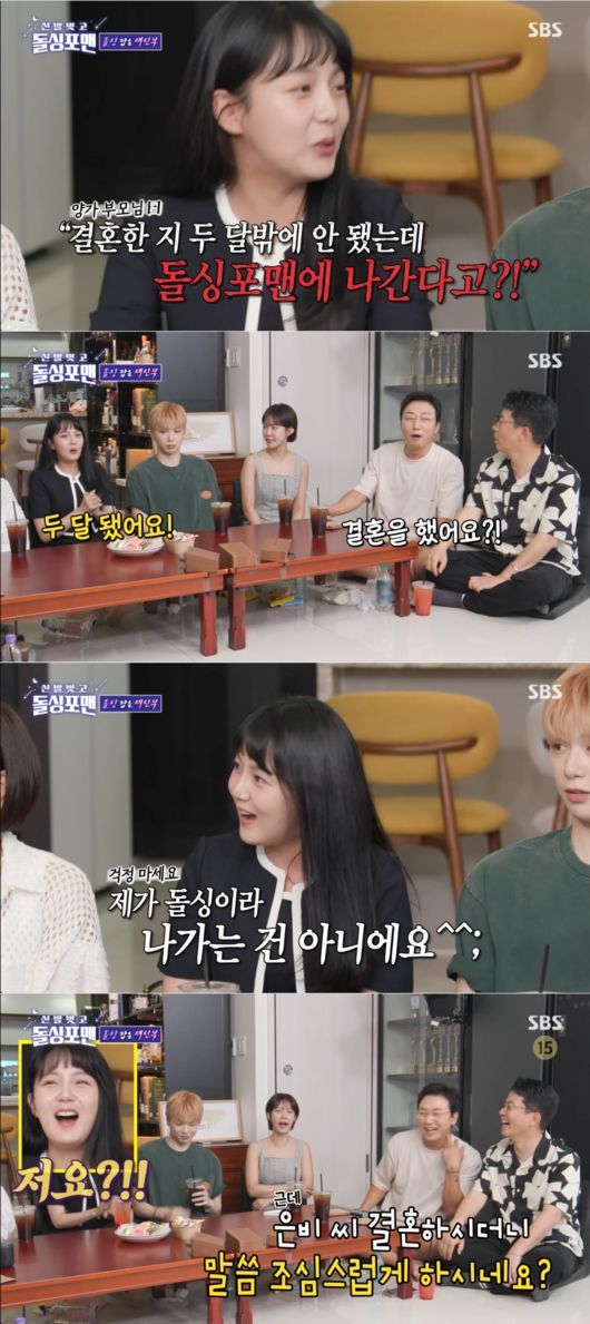 [메디먼트뉴스 김민정 기자] 배우 강은비가 결혼한 지 불과 두 달 만에 SBS '신발 벗고 돌싱포맨'에 출연하게 된 배경을 직접 밝혔다. 그녀는 '돌싱이라 출연한 것이 아니다'라고 해명하며, 양가 가족들까지 깜짝 놀랐다는 에피소드를 공개해 웃음을 자아냈다.