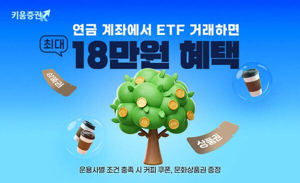 키움증권은 9월 30일까지 '연금 ETF 거래하면 최대 18만원 혜택' 이벤트를 진행한다고 2일 밝혔다.