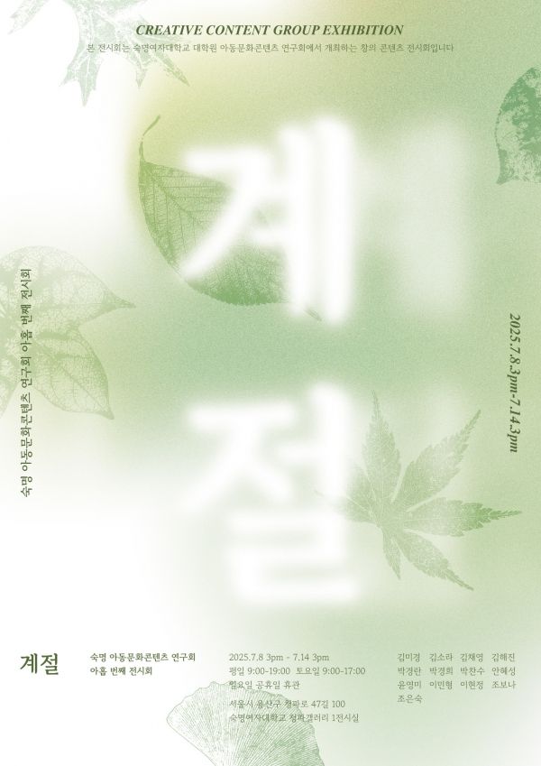 숙명여자대학교 아동문화콘텐츠 연구회가 오는 7월 8일부터 14일까지 청파갤러리 1전시실에서 제9회 정기전 ‘계절’을 개최한다.