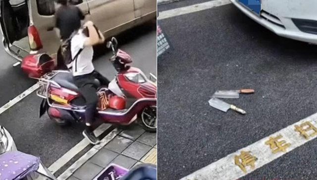 CCTV 영상을 보면 두 개의 칼이 걸어가는 사람과 오토바이 운전자 머리 위를 스치듯이 떨어졌다. 놀란 시민들은 머리를 감싸며 혼비백산 자리를 피했다. 떨어진 칼은 주로 육류를 썰거나 다질 때 쓰는 커다란 중식도였다.