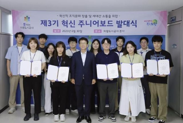 [와이뉴스] 의왕도시공사는 지난 6월 30일 미래지향적이고 혁신적인 조직문화 조성을 위해 MZ세대 청년 직원 중심의 혁신 주니어보드 3기가 공식 출범했다고 밝혔다.