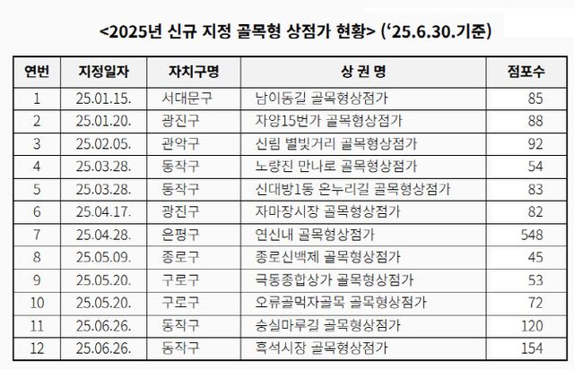 아울러 서울시는 지난 4월 30일 서울신용보증재단과 사업 대행 협약을 체결하고 25개 자치구별 지점을 활용한 현장 밀착형 골목형 상점가 지정 지원체계를 가동하고 있다.
