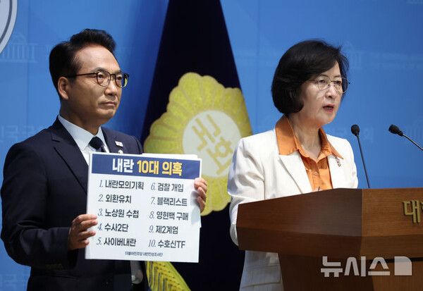 그러면서 ▲내란 모의 기획과 군사 반란죄 적용 ▲외환유치 의혹 ▲노상원 수첩 ▲정보사 수사 2단 ▲사이버 내란 의혹 ▲검찰 개입 의혹 ▲방첩사 블랙리스트 ▲영현백과 종이관 구매 ▲제2계엄 의혹 ▲수방사 수호신 TF 등 10개 의혹에 대한 철저한 수사를 촉구했다.