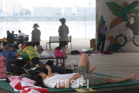기온은 한반도 주변에서 발생한 태풍에 의해 당분간 평년(최저기온 19~22도, 최고기온 25~29도)보다 높겠다. 최고체감온도도 한동안 33도 내외로 오를 가능성이 크다. 이번 무더위는 오전 9시 기준 일본 도쿄 남남동쪽 해상 1440㎞ 부근에서 북상 중인 태풍에 의해 고온다습한 북태평양고기압이 국내로 치우치면서 지속되고 있다는 게 기상청의 분석이다. 여기에 필리핀 동쪽 해상에서는 열대저압부가 한반도로 열기를 계속 끌어올리고 있다.