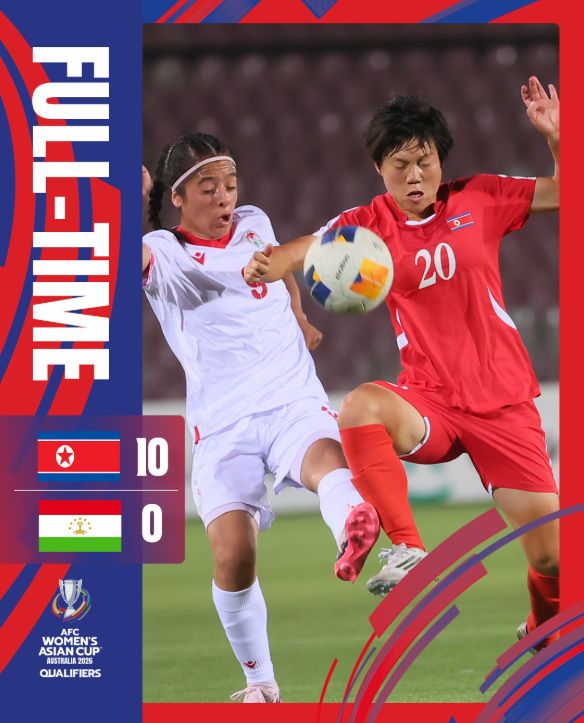 지난달 30일 타지키스탄 두샨베 파미르 스타디움에서 펼쳐진 2026 AFC 여자 아시안컵 예선 첫 경기에서 북한 여자 축구대표팀이 홈팀 타지키스탄에게 10-0 완승을 따냈다.