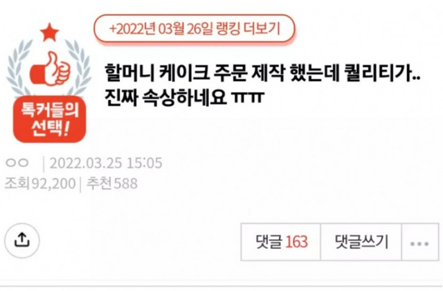 주문 제작한 할머니 케익.