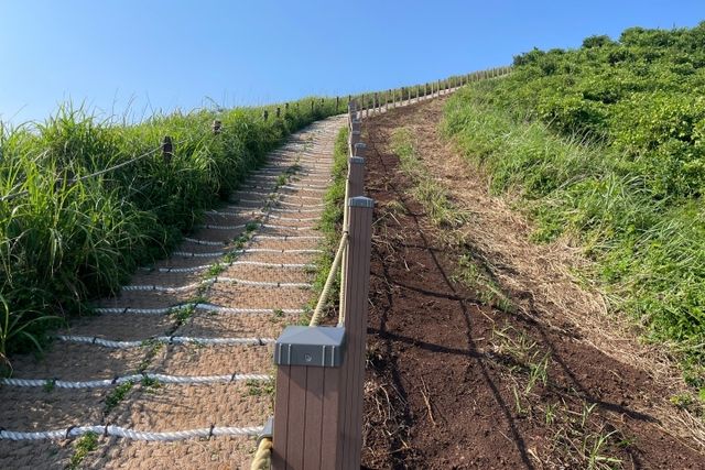 2일 오전 찾은 제주시 애월읍 봉성리 새별오름. 동쪽 탐방로를 200m가량 오르자 우측 풀이 모두 베어진 채 휑한 모습이 보였다. 탐방로 좌측의 무성하게 자란 풀들과 대조적으로 울퉁불퉁한 흙이 그대로 노출돼 있었다.