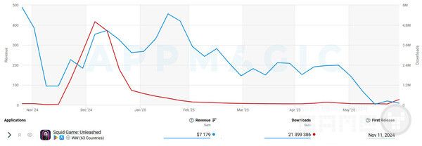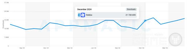 2024년 12월 시즌 2 출시와 함께, 오징어 게임에서 영감을 받은 사용자 생성 콘텐츠(UGC)의 물결은 Roblox의 다운로드를 2,170만까지 끌어올렸고, 2025년 1월에는 사상 최고치인 2,400만 설치를 기록했다.