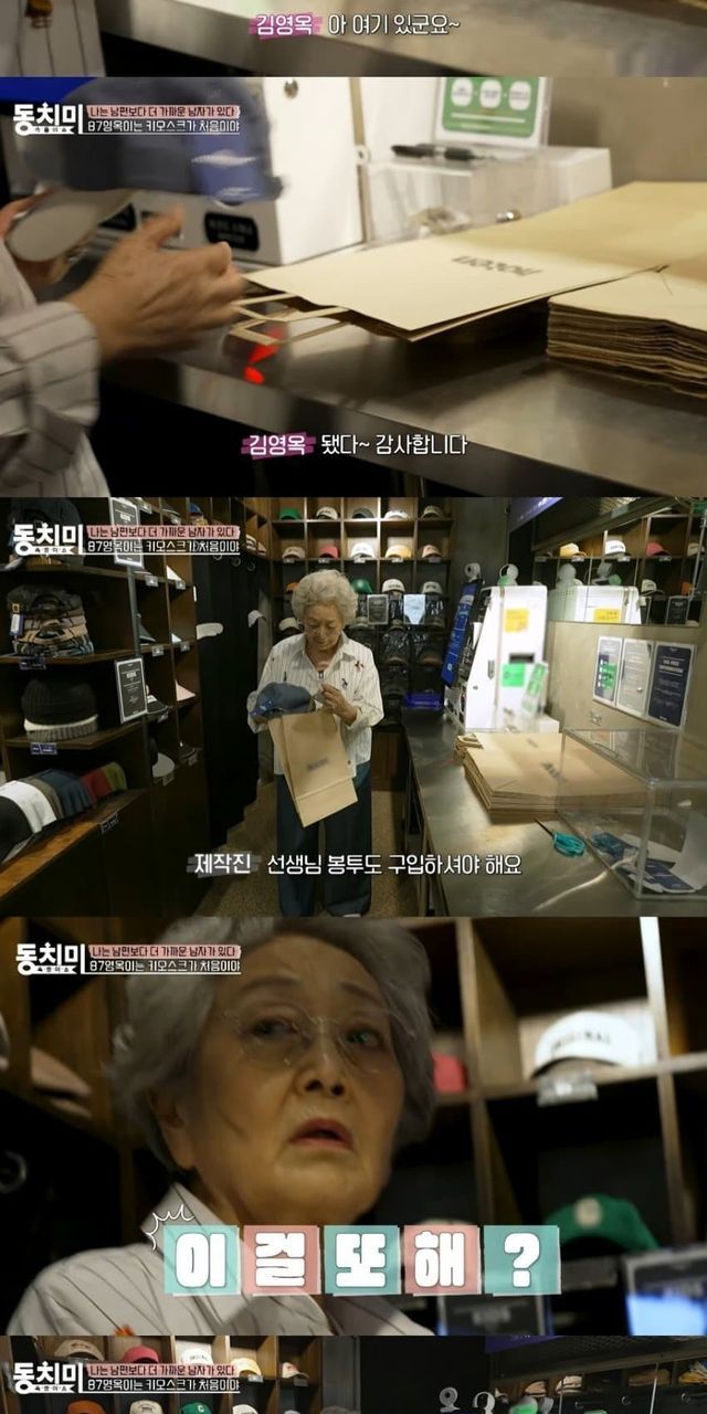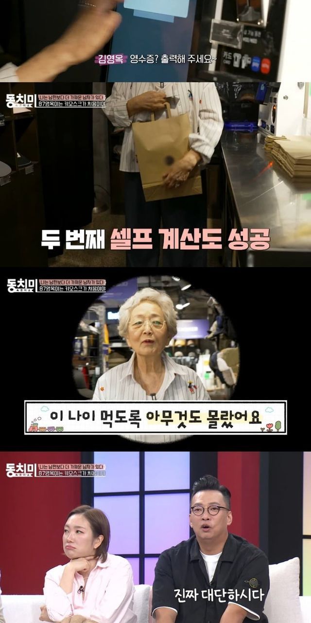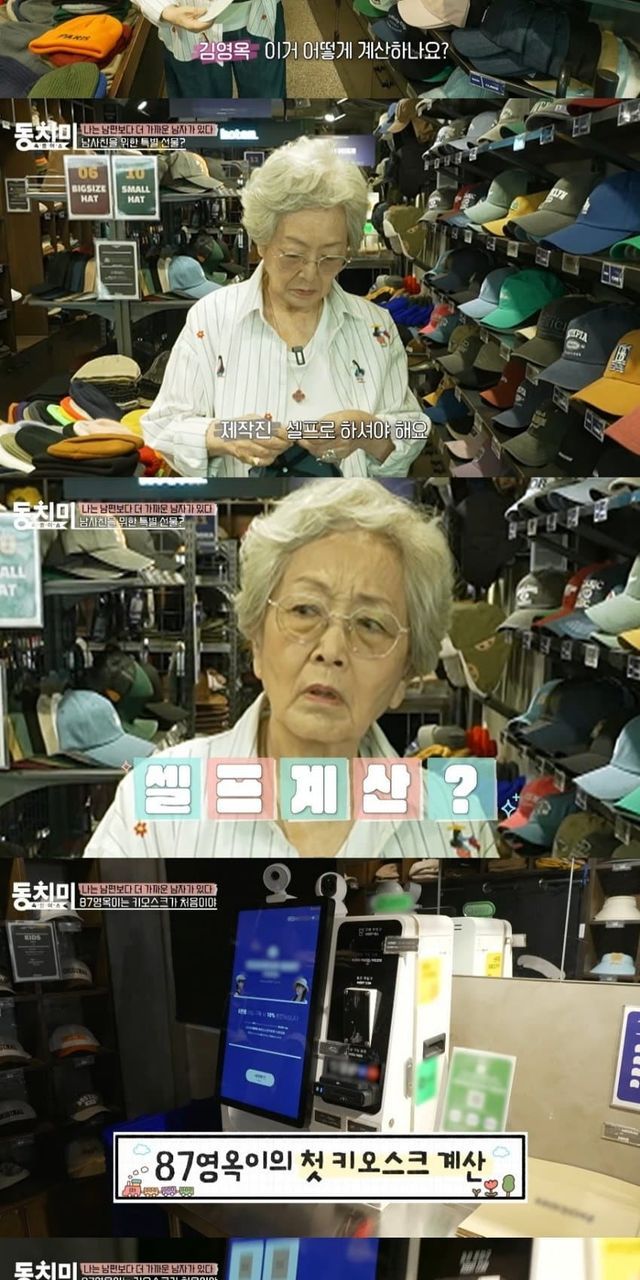 무인가게에서 키오스크 사용하는 배우 김영옥