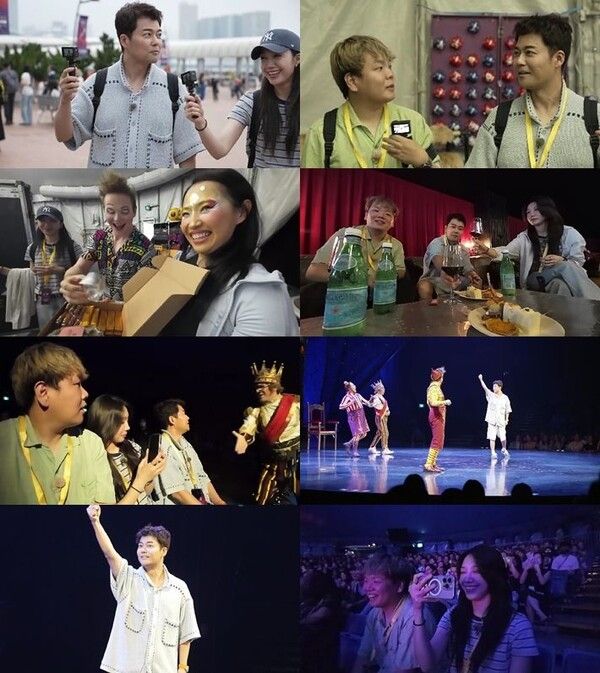 이날 방송에서 전현무는 "태양의 서커스를 보러가자. 배우 분들이 초대하셨다"라고 깜짝 발표한다. 이후 그와 함께 정은지·곽준빈이 무대 뒤 대기실에서 만난 배우들에게 한국 간식 등을 선물한다.
