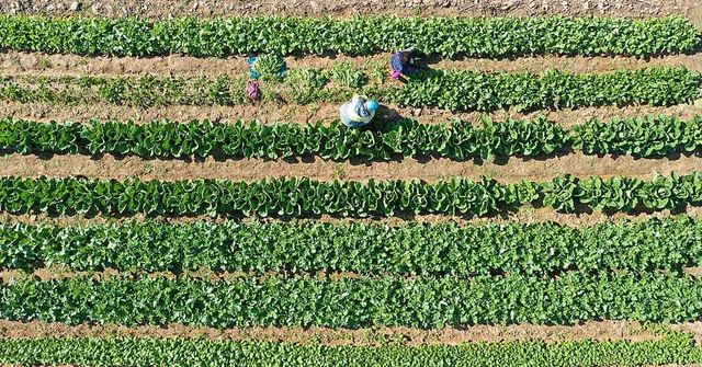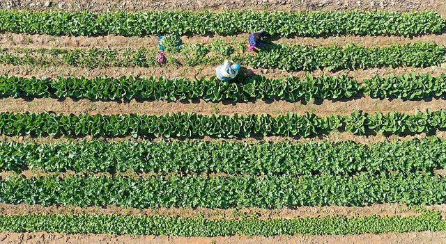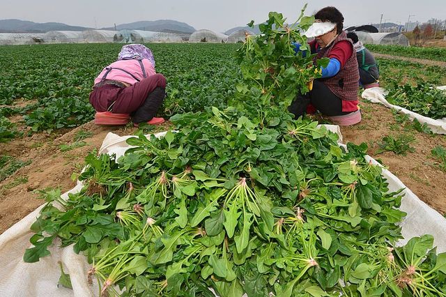 경기도 평택시 고덕면의 한 밭에서 농민들이 시금치를 수확하고 있다 / 뉴스1