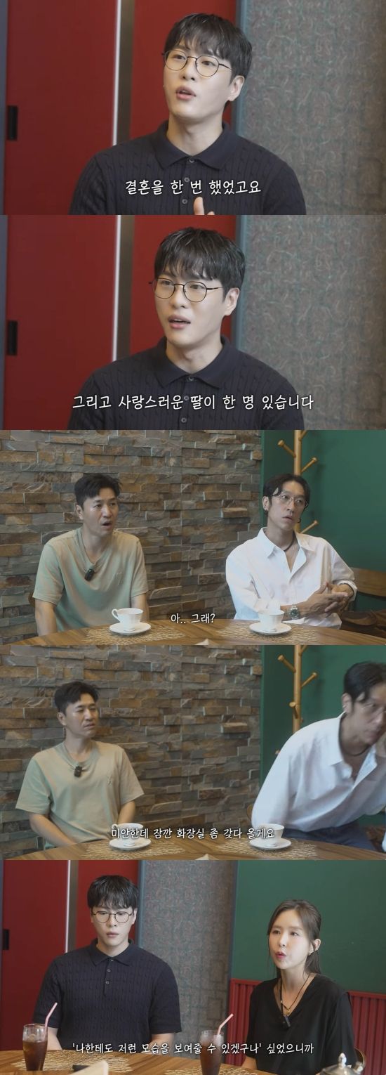 이혼 경력에 딸이 있다는 이야기가 나오자마자 빽가는 굳은 얼굴로 "잠깐만 화장실 다녀오겠다"며 자리를 떴고, 김종민은 처음 듣는 이야기에 크게 당황했다.
