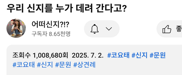 3일 오전 9시40분 신지 문원의 코요태 상견례 영상은 공개 만 하루도 되지 않아 100만 조회수를 돌파하는 뜨거운 관심을 받고 있다. 댓글은 무려 2만7천 개를 넘어섰다.