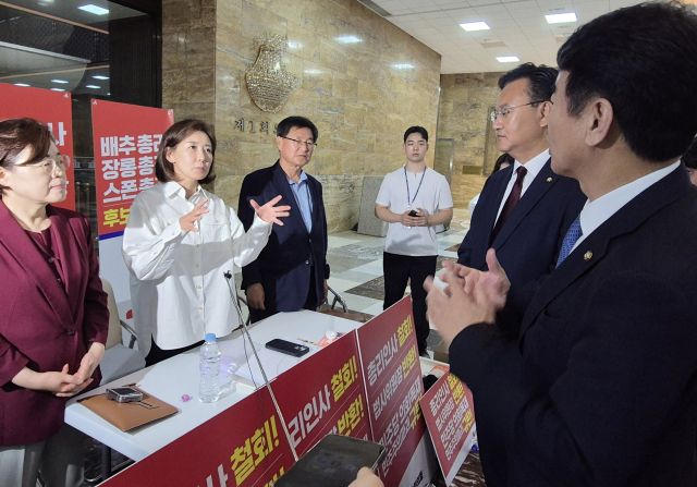 김민석 국무총리 후보자 사퇴와 국회 법제사법위원장직 반환을 요구하며 국회 로텐더홀에서 농성 중인 나경원 의원이 3일 국회 본회의에서 김 후보자 임명동의안 표결이 진행될 경우 농성을 계속 이어갈 의미가 없다며 사실상 중단할 뜻을 밝혔다.