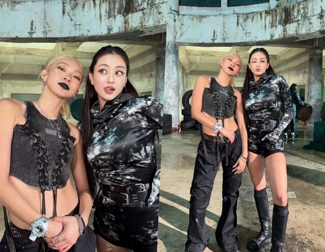 두 사람의 모습은 앞서 공개된 '스월파' 미션 당시 트와이스와 함께한 오죠갱의 모습. 지효는 블랙 & 그레이 타이다이 패턴의 후드 원피스에 와이드 벨트를 매치해 강렬하면서도 우아한 무드를 자아냈고, 쿄카는 레이스업 디테일이 돋보이는 크롭 톱과 카고 팬츠를 매치해 특유의 스트리트 감성을 드러냈다. 블랙 립 포인트를 더한 쿄카의 스타일링은 보는 이들의 시선을 단숨에 사로잡았다.
