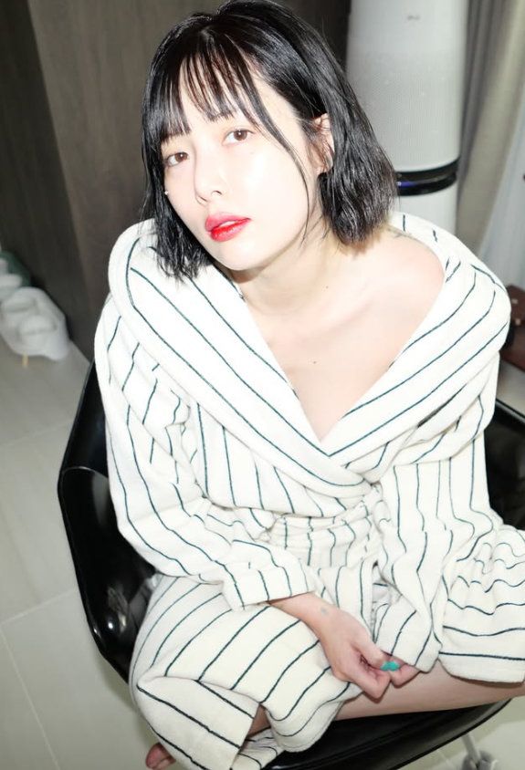 또한 샤워가운을 입은 채 찍은 사진도 게재했다. 현아는 흘러내린 샤워가운에 몽환적인 눈빛을 더해 화보 같은 분위기를 연출했다.