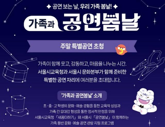 오는 5일 첫 공연을 시작하는 이 프로그램은 가족이 함께 문화예술을 즐기고 소통하는 자리를 마련하기 위해 기획됐다. 서울시의 대표 문화예술 정책인 ‘공연봄날’과 연계해 운영된다.