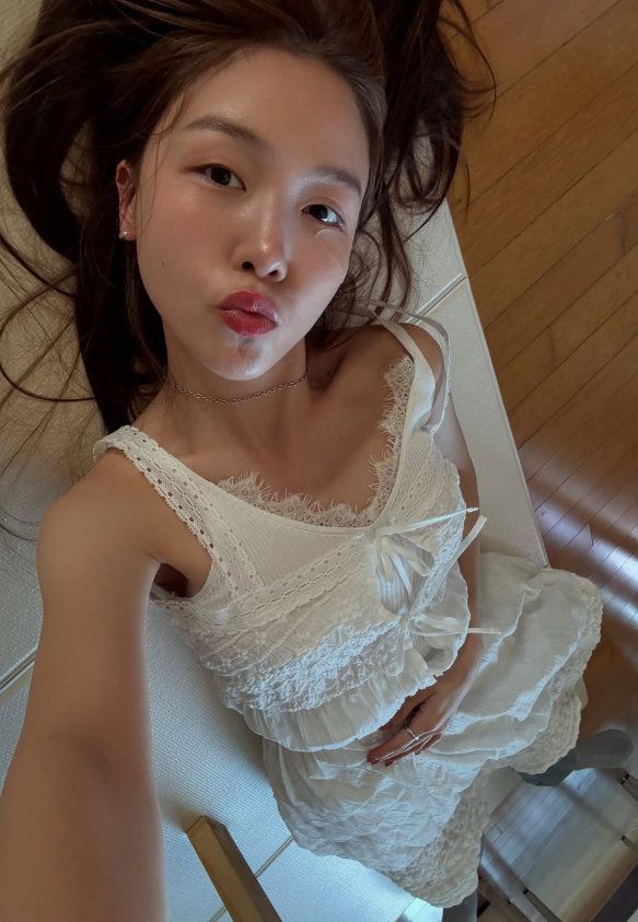 민아는 2일 자신의 인스타그램을 통해 바닥에 드러누워 찍은 사진을 여러장 게재했다. 사진 속 그는 청순한 화이트룩을 선보이며 자유롭고 나른한 분위기를 자아냈다.