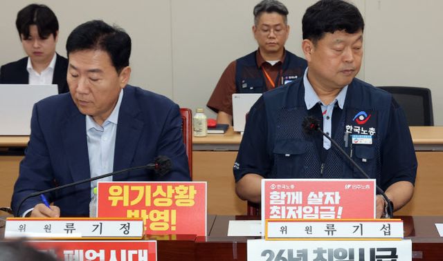 반면 사용자위원 간사인 류기정 한국경영자총협회(경총) 전무는 “폐업 사업자들이 100만명을 넘어서는 등 각종 지표들이 영세중소기업과 소상공인들의 지불능력이 이미 한계에 도달했다”며 “우리 최저임금은 이미 2019년에 중위임금의 60%를 넘어서며 국제적으로도 높은 수준”이라고 했다. 경영계는 중위임금의 60%를 최저임금 적정 수준의 상한선이라고 보고 있다.