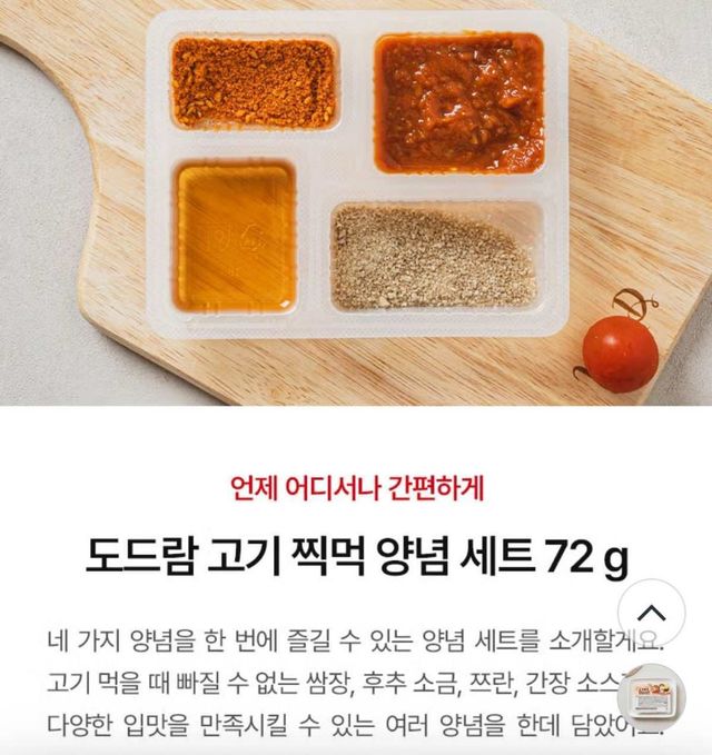 양념은 1회 분량에 가까운 소포장으로 남김 없이 깔끔하게 사용 가능하고, 별도로 조리하거나 덜어낼 필요가 없어 실용성이 높다. 고기만 굽고 세트만 꺼내면 바로 ‘찍먹’이 가능하다는 점에서, 캠핑족들 사이에선 “고기판 옆 필수템”이라 불리고, 자취생 커뮤니티에선 “혼밥족 최애템”으로 떠올랐다.